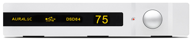 A nice display (512*64 pixels OLED) telling you the source, the sample rate and the volume level. Brightness is adjustable. You can also set it to auto off.