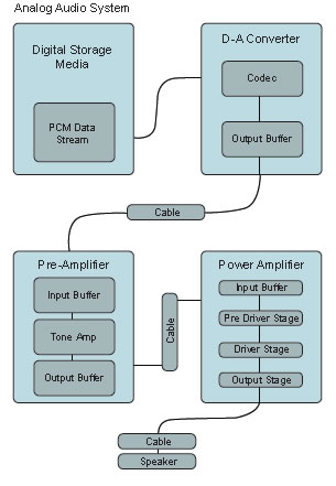 The digital is converted by a DAC to analog and feed into the amp.