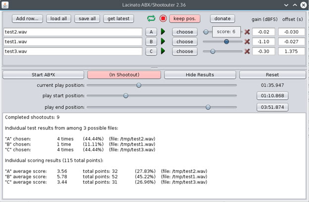 ABX/Shootout-er blind testing audio software