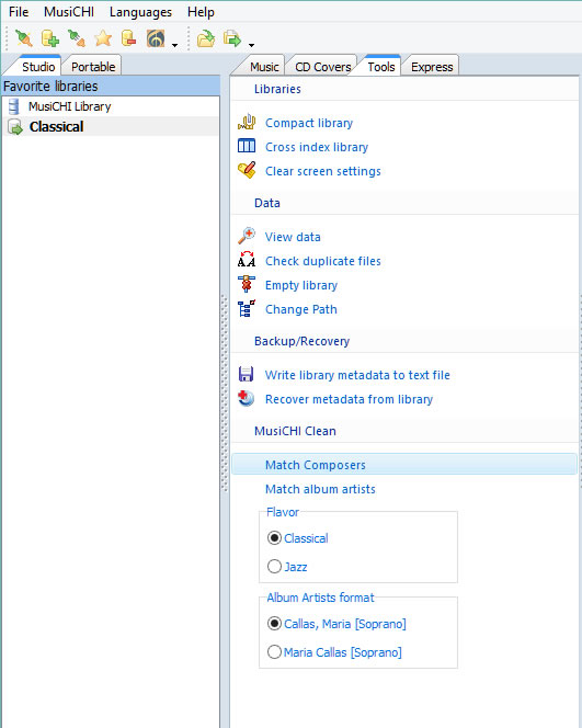 Match Composers and Match Album Artist enables you to select Composers and Artist not parsed by the MCHI Clean. You can submit them to the Tagger and invoke the Cleaner.