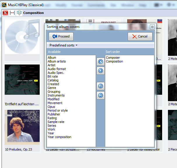 You can display Albums or Compositions and sort them the way you want.