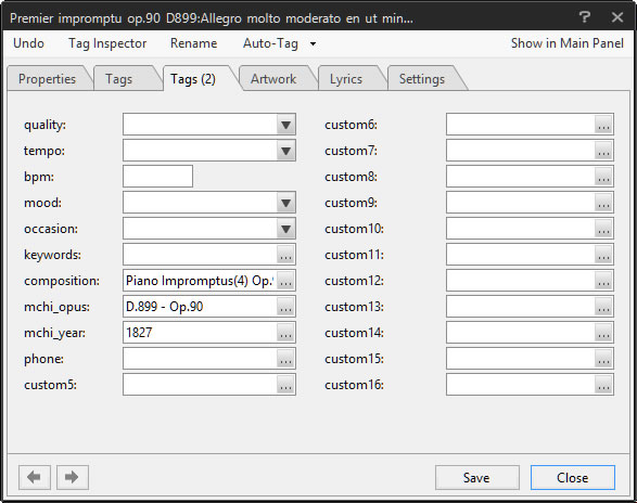 I have a custom tags like Composition, Opus, etc.