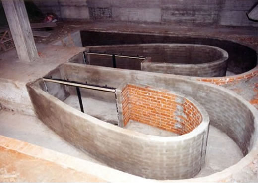 When audio designer Roberto Delle Curti wanted the world's biggest, baddest subwoofer, he didn't go prancing off to some snooty audio store. He got out a shovel. Underneath his world-class home theater lurks the Real Total Horn, consisting of two cavities that are three feet deep and 31 feet long. These tunnels function as horns, each driven by eight 18-inch woofers for a total of 16 woofers — along with thousands of watts of raw power. How low can it go? This "biggest horn sub in the world" can crank out a bass note that's below 10Hz, which will sound more like an ominous, low ticking noise than music. But imagine the earthquake this monster can create! Way to wake up the neighborhood, Roberto! Good thing he lives in Italy.