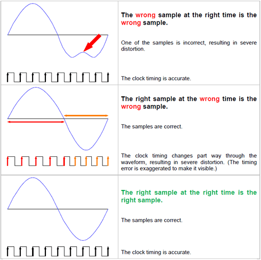 The first picture I do think is clear, if samples are mangled (not on purpose, that is called DSP) e.g. a bit is flipped, it will result in a distorted sound.