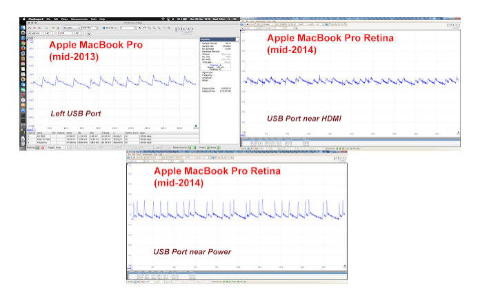 If you measure various ports on the same computer, they do indeed differ in the ripple on the power line.