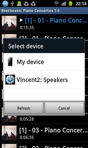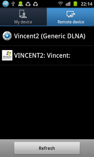 The example below uses AllShare, a DLNA implementation by Samsung.